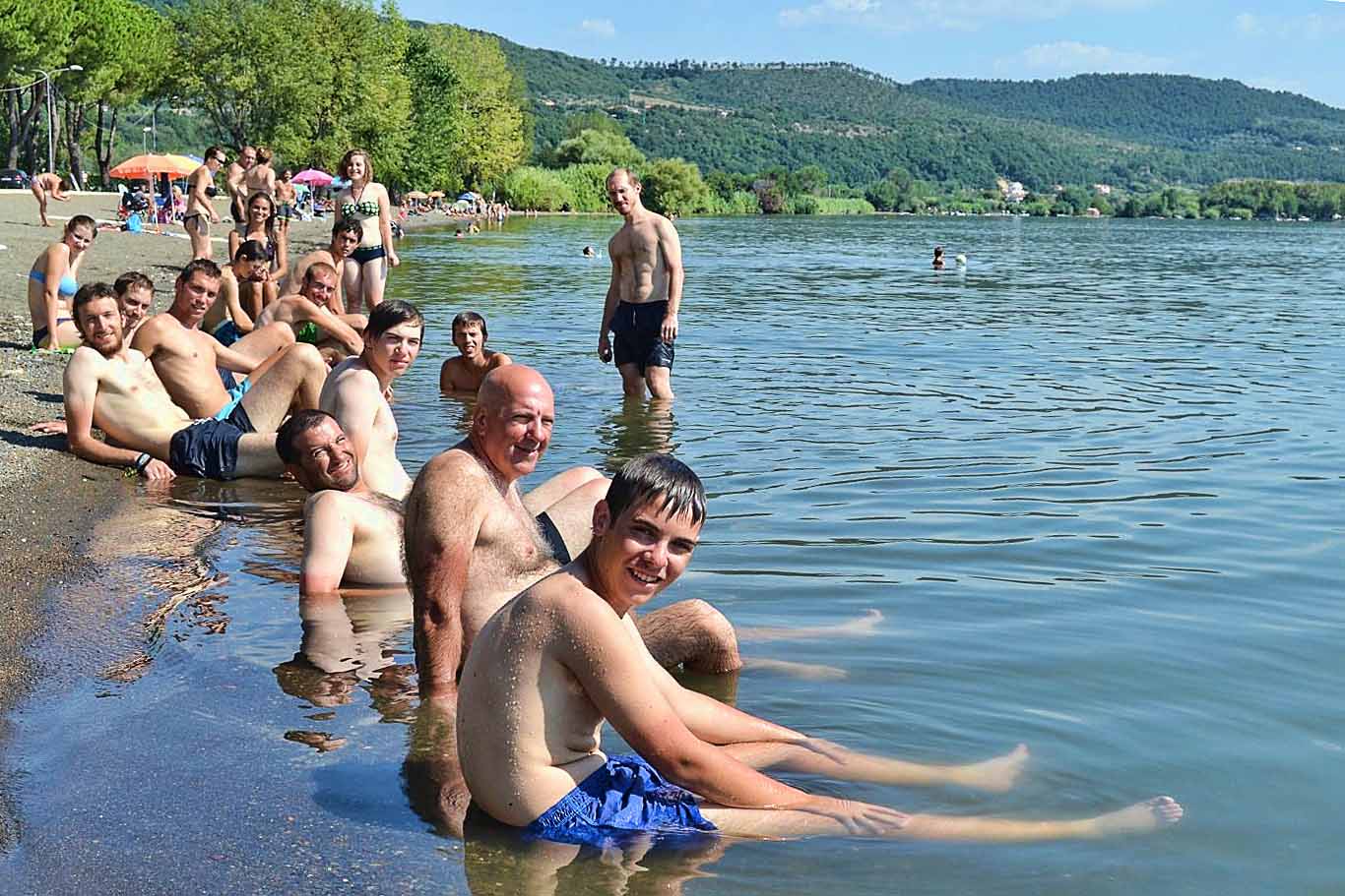 Siamo in un grande salone, posti a terra. Dopo aver fatto doccia e bucato andiamo al lago per fare un bel bagno rigenerante.