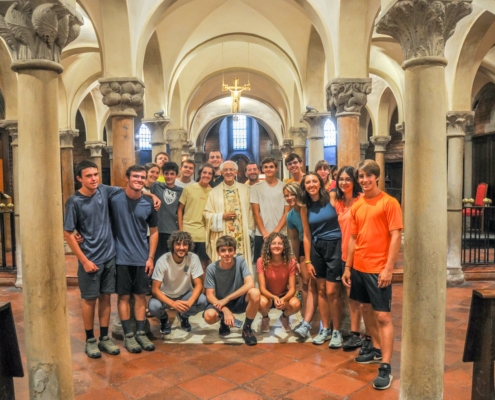 Successivamente sotto una leggera pioggia, abbiamo raggiunto l’oratorio piacentino della Santissima Trinità, dove abbiamo accolto il nostro Vescovo Edoardo, con cui abbiamo raggiunto la Cattedrale.
