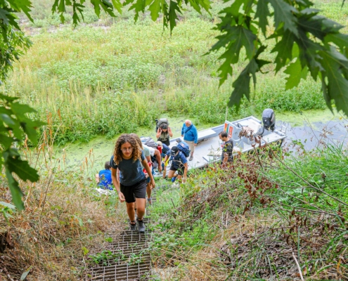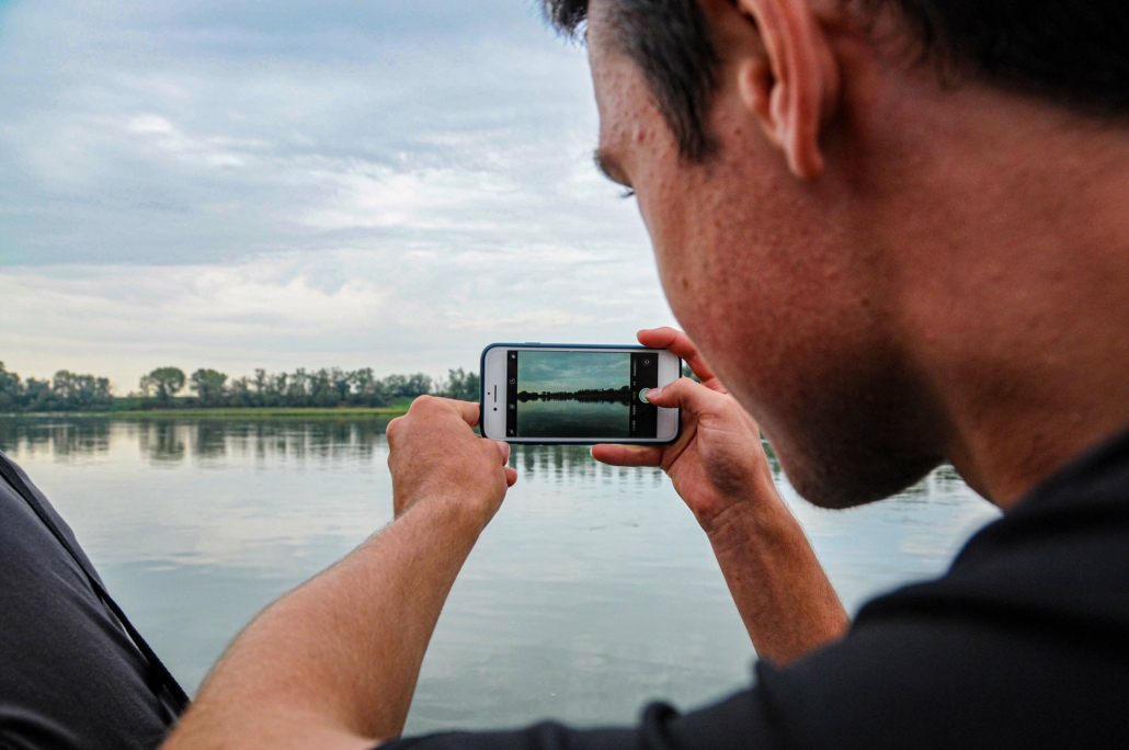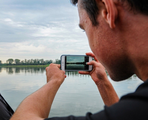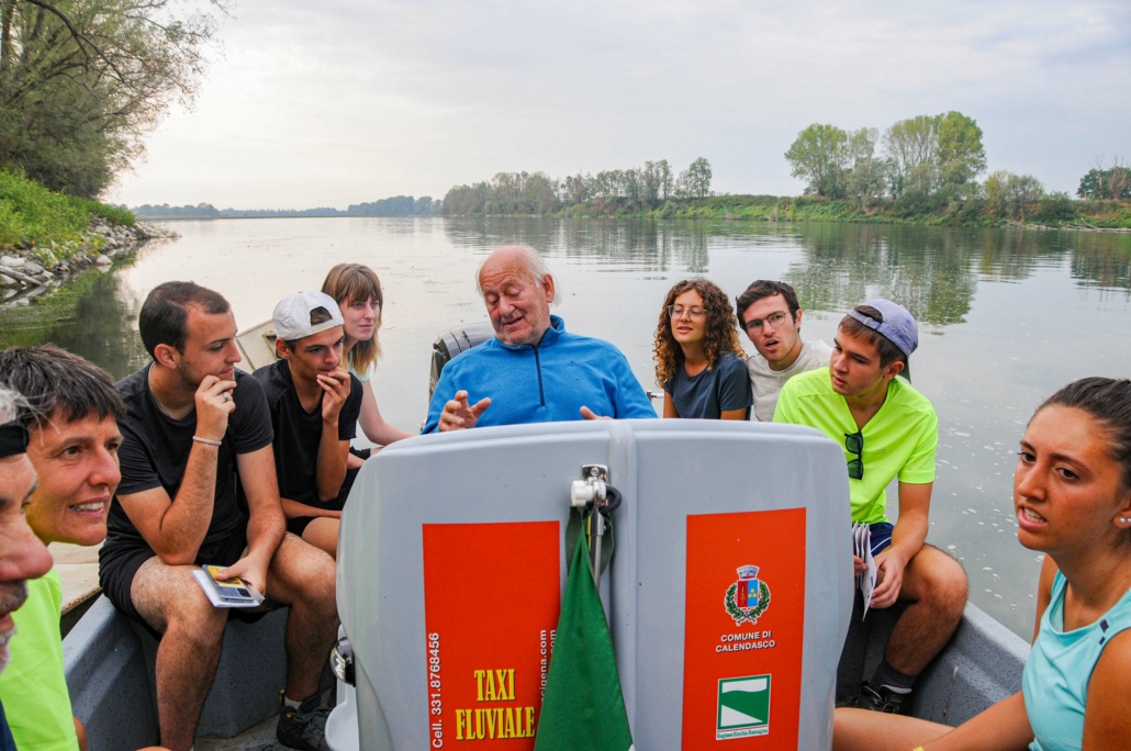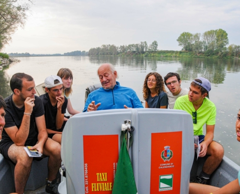 Per entrare in Emilia Romagna abbiamo dovuto attraversare il Po per mezzo di una imbarcazione con altri pellegrini.