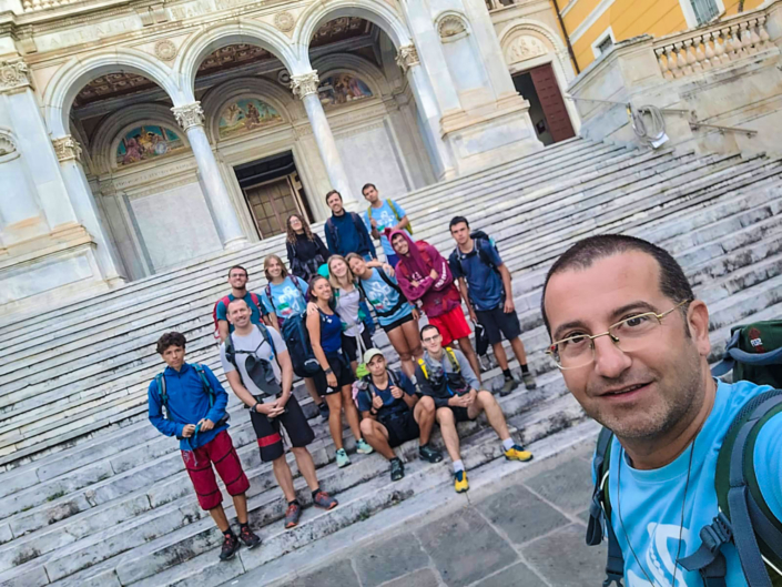 Alle 6:30, noi 15 pellegrini ci troviamo puntuali davanti alla porta dell’ostello, pronti (all’incirca) ad affrontare i 38 km tanto temuti. Grazie alle Lodi recitate davanti alla Cattedrale di San Francesco e San Pietro, insieme ad una golosa colazione, ci sentiamo rinvigoriti per affrontare l’impresa giornaliera.