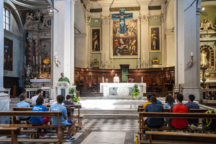 Raggiungiamo l’oratorio di Camaiore verso le 14, affamati, stanchi e in cerca di riposo. Durante l’abbondante pranzo portatoci da Alberto, riceviamo una piacevole visita: Francesco e Valeria, insieme alla piccola Rachele. Ci fanno compagnia fino a dopo Messa, quando ci salutiamo augurandoci di vederci presto. La Messa oggi è celebrata nella Collegiata di Santa Maria Assunta e cogliamo l’occasione ancora per ringraziare Don Gabriele per l’accoglienza.