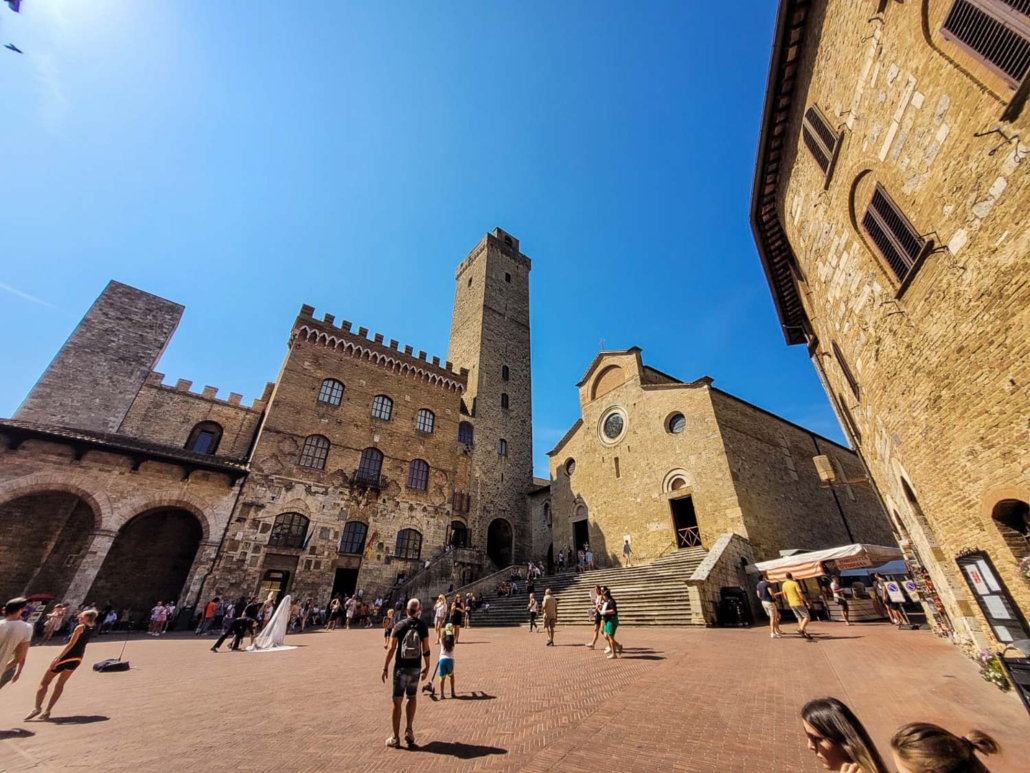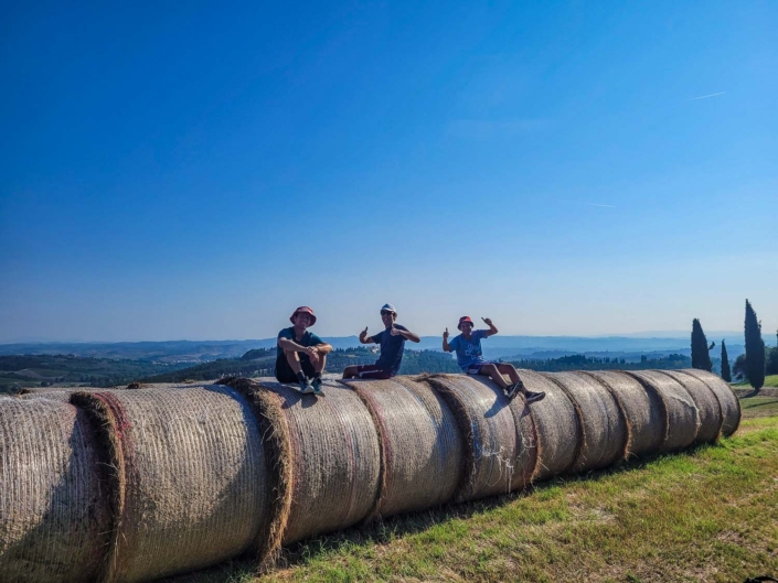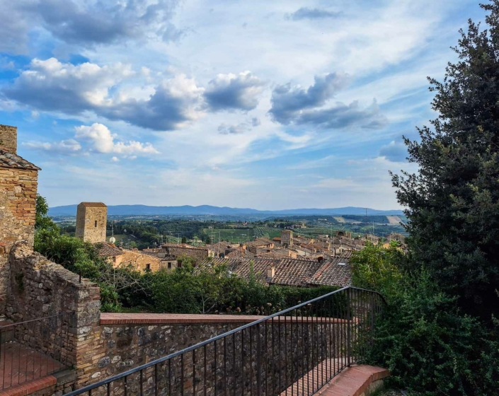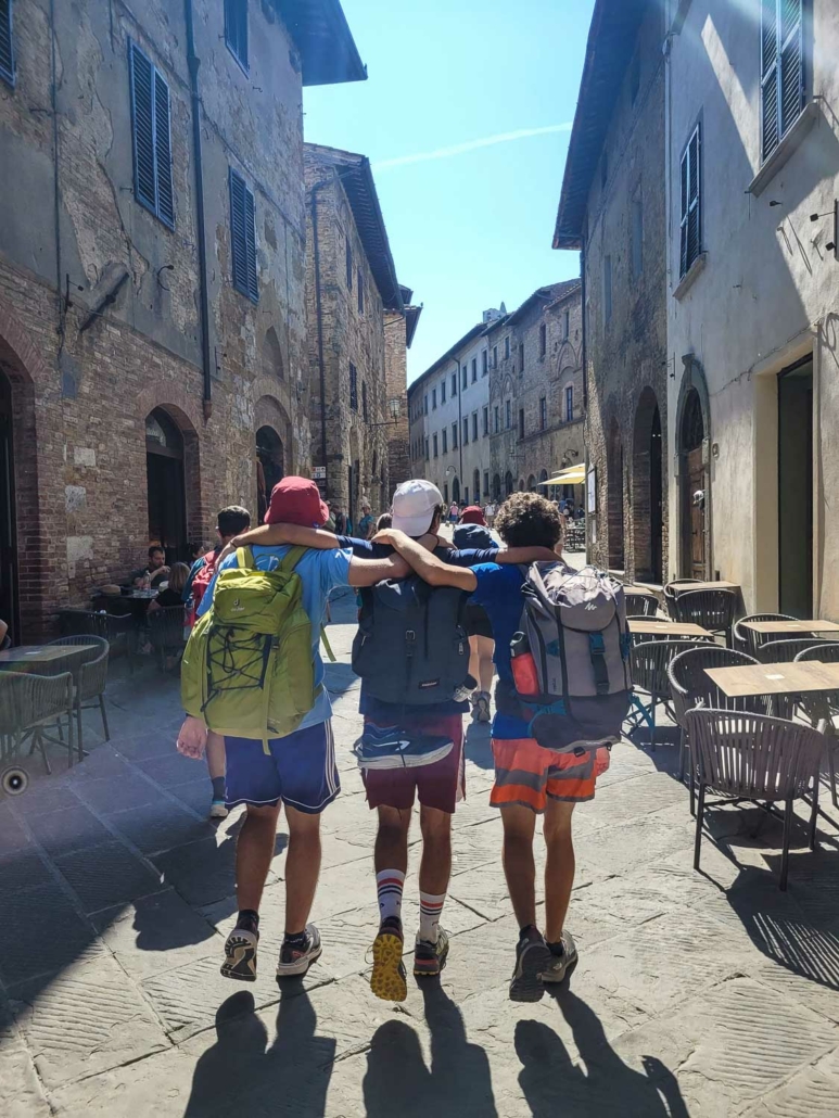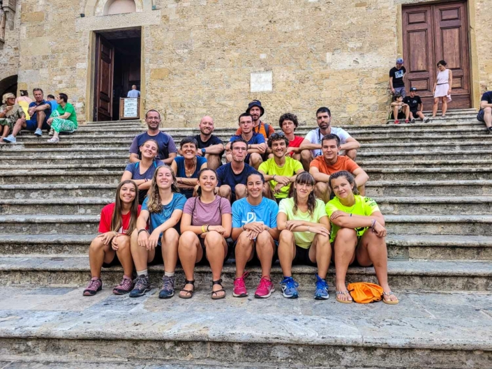 Il percorso di oggi presenta 13 km con un po’ di dislivello dovuto alle colline toscane che allo stesso tempo ci regalano fantastici scorci e panorami. Giunti all’interno delle mura di San Gimignano verso le 12, ci alterniano tra pranzo e doccia all’interno del monastero di Sant’Agostino.