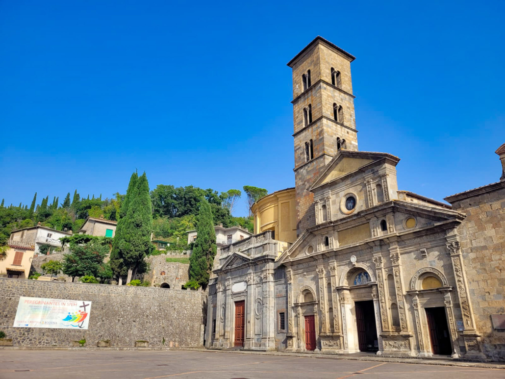 Partiamo in direzione Bolsena e dopo una decina di chilometri decidiamo di fermarci in località San Lorenzo Nuovo per fare colazione, ma prima di riprendere il nostro cammino, sostiamo qualche minuto nella chiesa dedicata a San Lorenzo martire, dove abbiamo l’occasione di conoscere un gentile parrocchiano che ci spiega la storia del crocifisso bizantino dalle particolari caratteristiche contenuto nella chiesa.