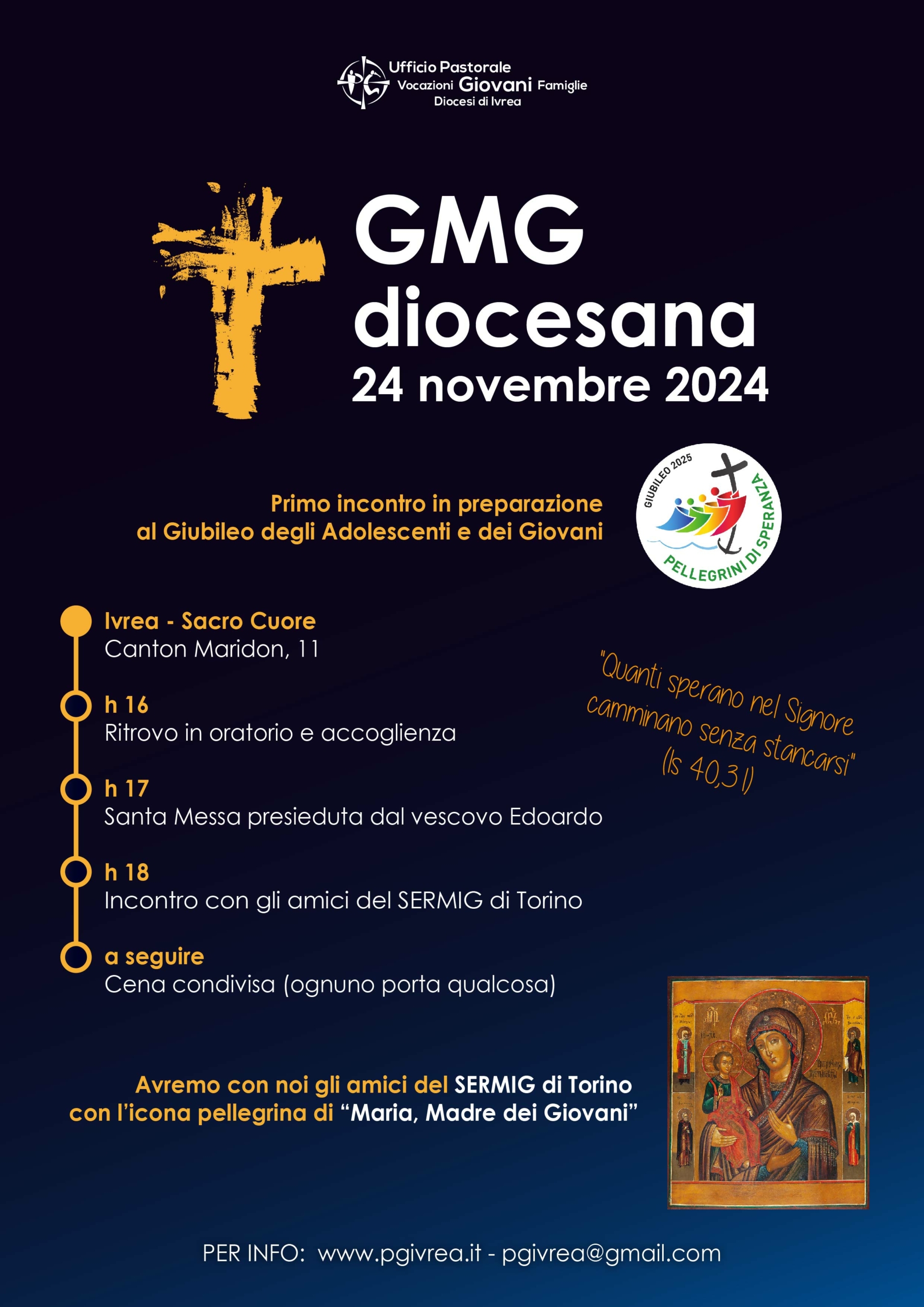 Avremo con noi gli amici del SERMIG di Torino con l’icona pellegrina di “Maria, Madre dei Giovani”