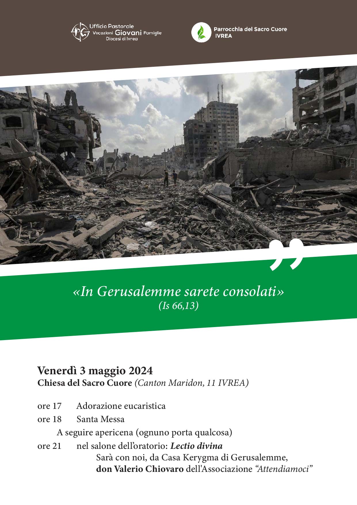 - ore 21 nel salone dell’oratorio: Lectio divina con, da Casa Kerygma di Gerusalemme, don Valerio Chiovaro dell’Associazione “Attendiamoci”