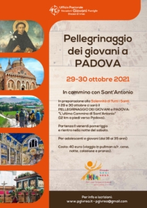 In preparazione alla Solennità di Tutti i Santi, il 29 e 30 ottobre ci sarà il PELLEGRINAGGIO DEI GIOVANI a PADOVA:
