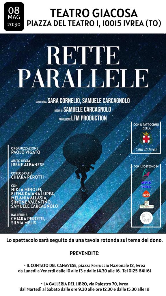 A novembre del 2021 l’AIDO, nelle persone di Paola Rabbione e Corrado Bellono, mi contattava per cercare di portare in Diocesi lo spettacolo teatrale “Rette parallele”, tratto da un libro di Sara Cornelio. Parlando insieme a Paola mi veniva in mente chi era Sara. Conoscevo bene il papà che, come geometra, lavora per la Curia di Ivrea, e io dal 2008 al 2015 mi occupavo della Casa del Clero della Diocesi di Ivrea, che era in via Varmondo Arborio 28, quindi con Marco Cornelio avevo diversi contatti per questioni di lavoro. Ci parlava di sua figlia Sara, affetta da fibrosi cistica che doveva essere trapiantata di polmoni. Sapevo che il trapianto era stato fatto ma non avevo seguito la vicenda, quindi, quando ho sentito il nome di Sara Cornelio, mi si è accesa una lampadina e ho accettato di buon grado di occuparmi della cosa. Mi sono sentito con don Davide Rossetto, direttore della Pastorale giovanile, che con entusiasmo mi ha invitato a presentare il progetto al tavolo della consulta della Pastorale giovanile che mostra la sua disponibilità a partecipare al progetto. Apriamo anche una serie di videochiamate fra me, Paola Rabbione, Paolo Vigato, che è l’organizzatore dello spettacolo, e Sara Cornelio che, entusiasta per l’idea di portare lo spettacolo al Giacosa, non si risparmia nello stare con noi anche se a volte deve interrompere il collegamento per riposare. Poi accade che Sara viene ricoverata alle Molinette e il 19 febbraio giunge la notizia del suo decesso che lascia tutti sgomenti. Parlando con i suoi genitori viene confermato il fatto che era suo desiderio portare l’opera teatrale Rette parallele in un teatro canavesano. Momenti d’amore, di rinascita e altri ancora di difficoltà, narrati attraverso un linguaggio teatralmente contemporaneo. L’esistenza dell’uomo non è dettata forse dalla somma dei suoi respiri? “Rette Parallele” si fa ambasciatore di una verità più grande: respirare insieme è il vero atto rivoluzionario. E allora siamo andati avanti con il progetto di Sara Cornelio e domenica 8 maggio, alle ore 20,30, al Teatro Giacosa di Ivrea, con il patrocinio del Comune di Ivrea, verrà presentato lo spettacolo teatrale “Rette parallele” seguirà una tavola rotonda sul tema del dono. Saranno presenti il dottor Raffaele Potenza, Medico Coordinatore presso il Coordinamento Regionale delle Donazioni e dei Prelievi di Organi e Tessuti, il dottor Giovanni Bersano, responsabile uocp ASLTO4, il sig Fabio Arossa, vicepresidente regionale AIDO